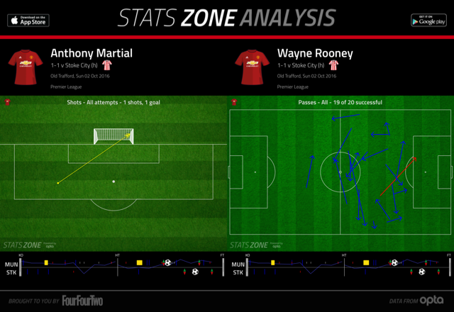 But United are clearly demonstrating much more than last season. A huge reason for this is that they now have world-class performers in Zlatan Ibrahimovic and Paul Pogba, of course, while the likes of Marcus Rashford have more freedom in the final third. Ibrahimovic’s movement into Stoke’s left-hand channel caused them problems and allowed Rashford to head diagonally for goal.