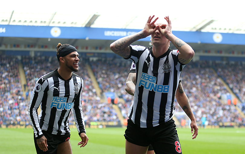Jonjo Shelvey opened the scoring early in the first half for Newcastle, finishing off a sweeping counter-attack with a lovely finish on the edge of the box after selling Harry Maguire and Wes Morgan with a clever dummy.