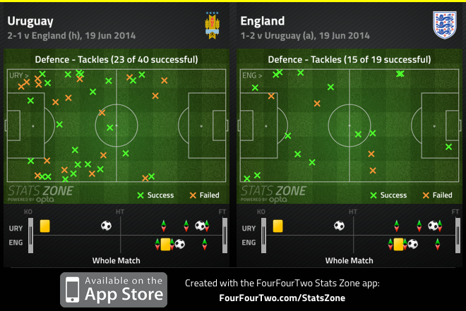 Uruguay were winning loose balls in their banks of four, while England were regaining it in full-back positions.