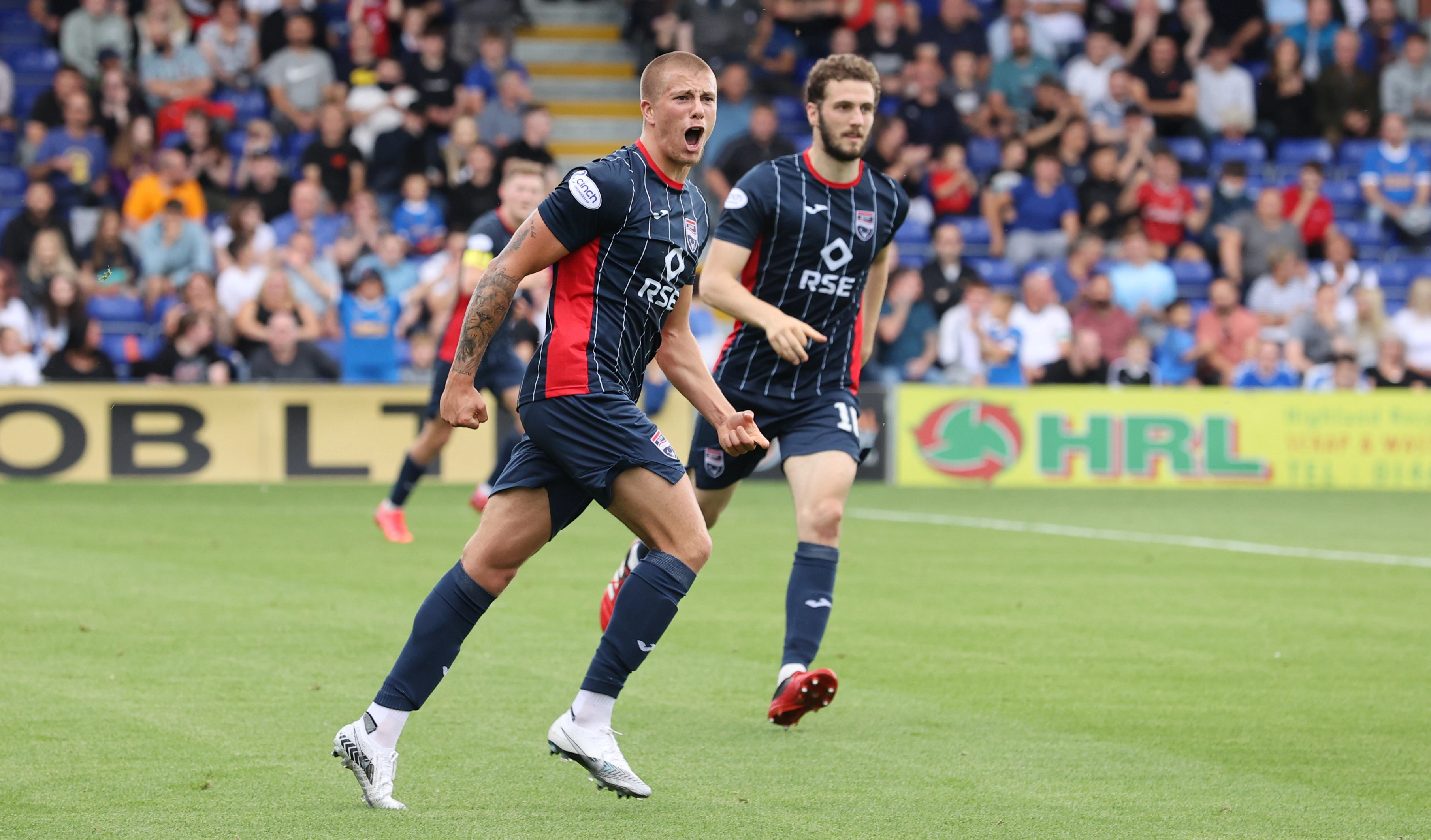 Joe Aribo and Connor Goldson put the visitors 2-0 up in the cinch Premiership clash before Harry Clarke, on loan from Arsenal, pulled a goal back in the 39th minute with his first Staggies goal.