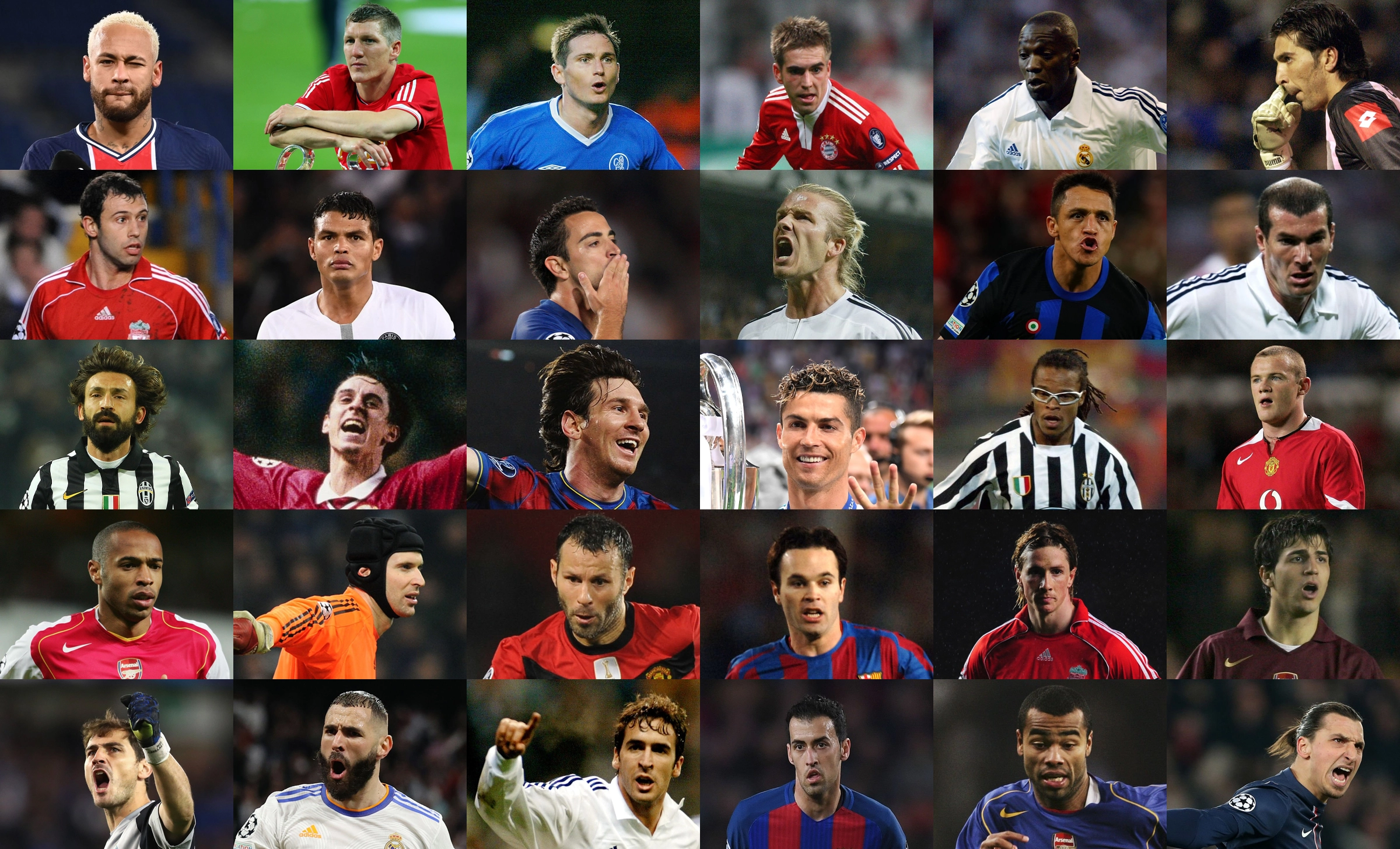 Quiz! Can you sort these 30 players by the number of Champions League appearances they made?