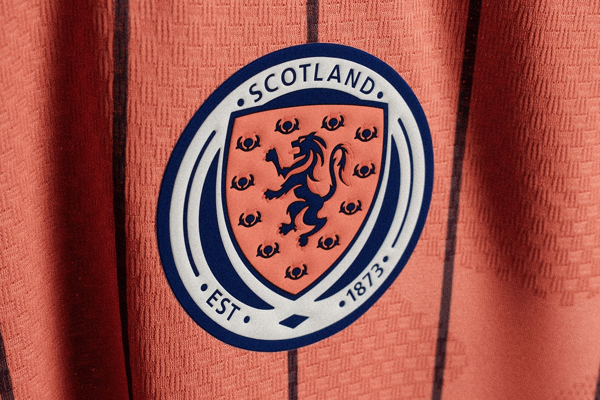 Scotland's 2026 World Cup away kit boasts a vibrant salmon-red base which serves as a high-energy contrast to the home kit, although it might not fly off the shelves quite like its navy blue brother.