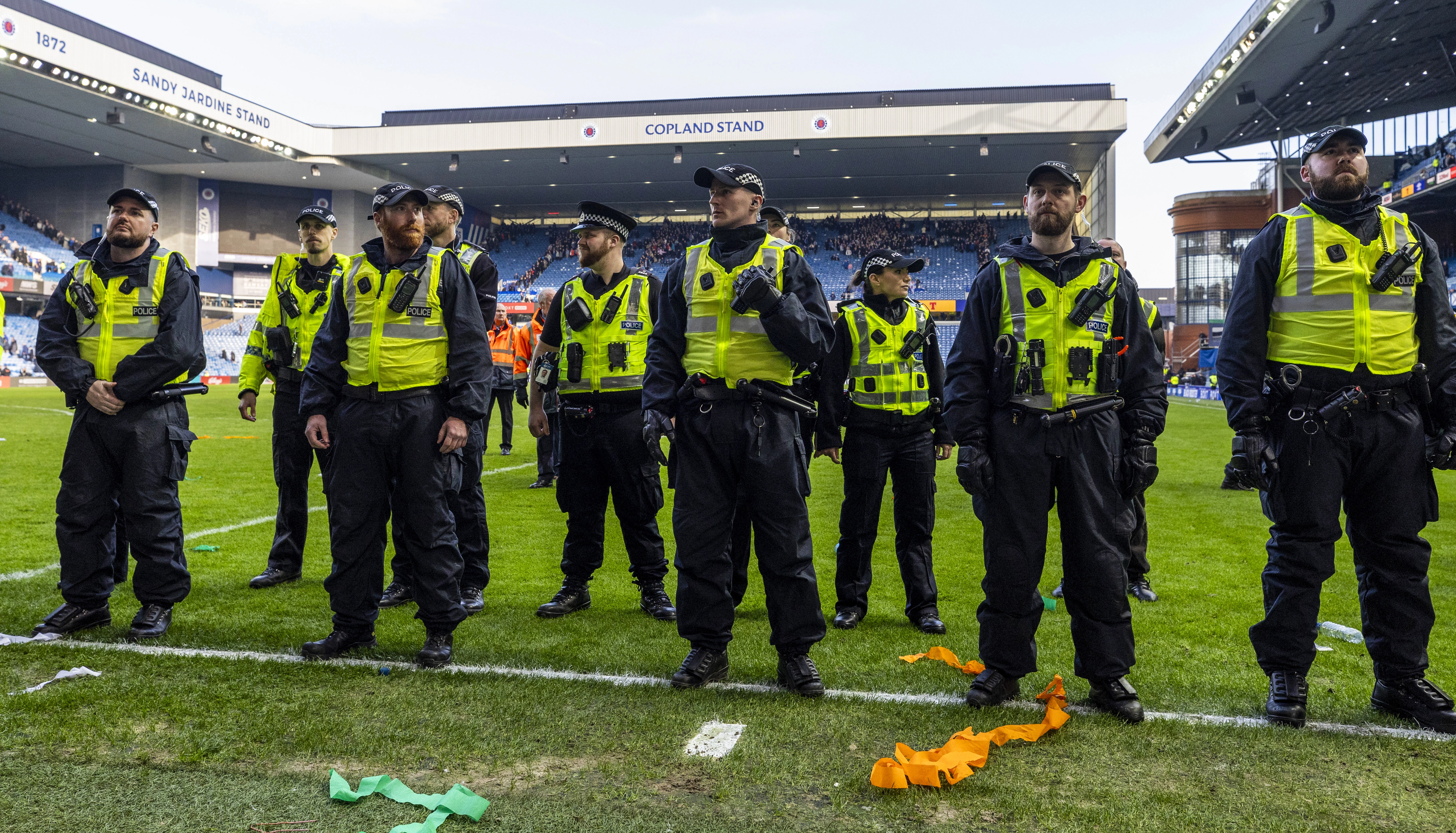 There have since been nine arrests, for violence both inside and outside Ibrox, including one instance on a police officer as well as against a coach and player.